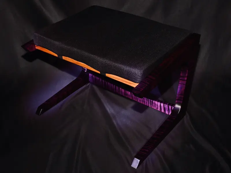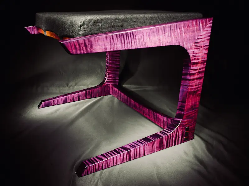 The Noir Crest: A Custom Purple Curly Maple Ottoman